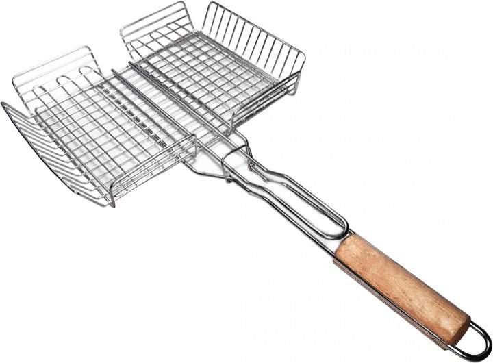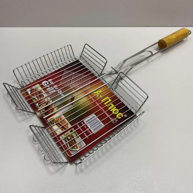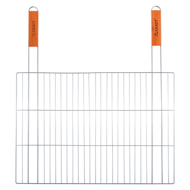 Решітка (сітка) для гриля плоска 54х38 см Kamille СКАУТ з 2-ма дерев'яними ручками прямокутна