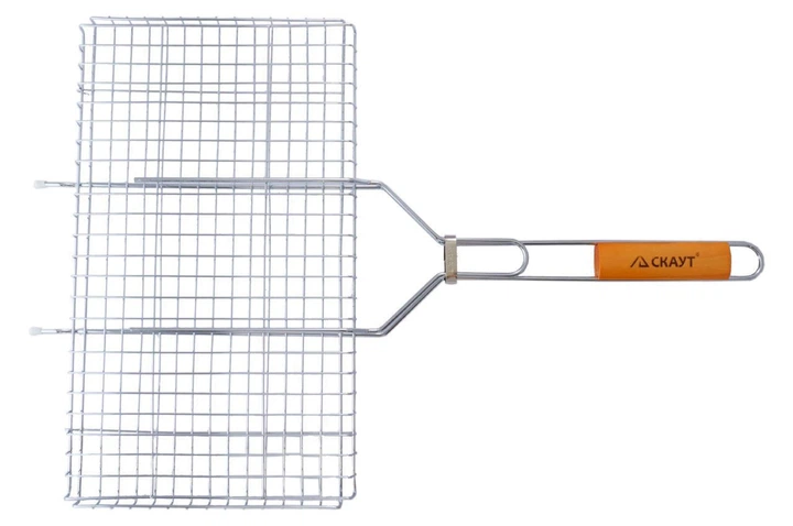 Грати для гриля 44,5х26х2,5 см. з антипригарним покриттям Kamille СКАУТ з дерев'яною ручкою