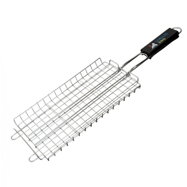 Грати-гриль Сила 450 x 360 мм для м'яса та овочів з дерев'яною ручкою універсальна решітка для гриля (D-IT22-C)
