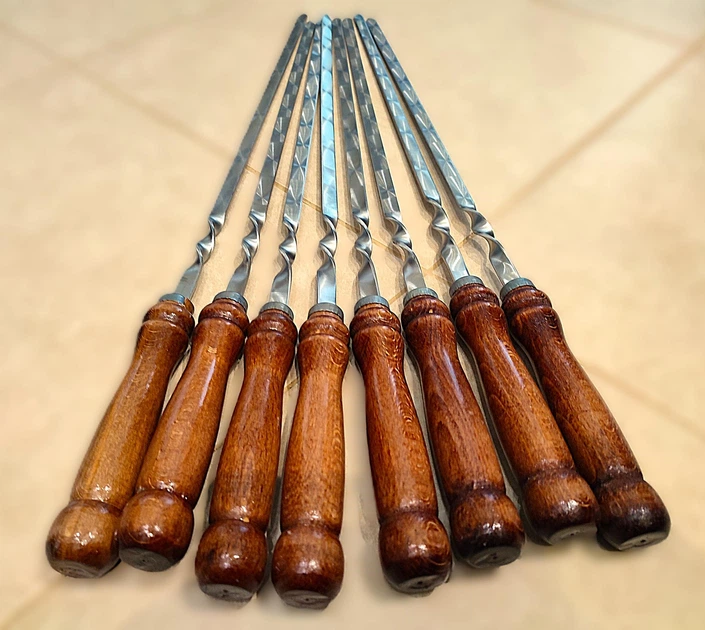 Набір шампурів з дерев'яною лакованою ручкою 8 штук L-750х3х12 мм