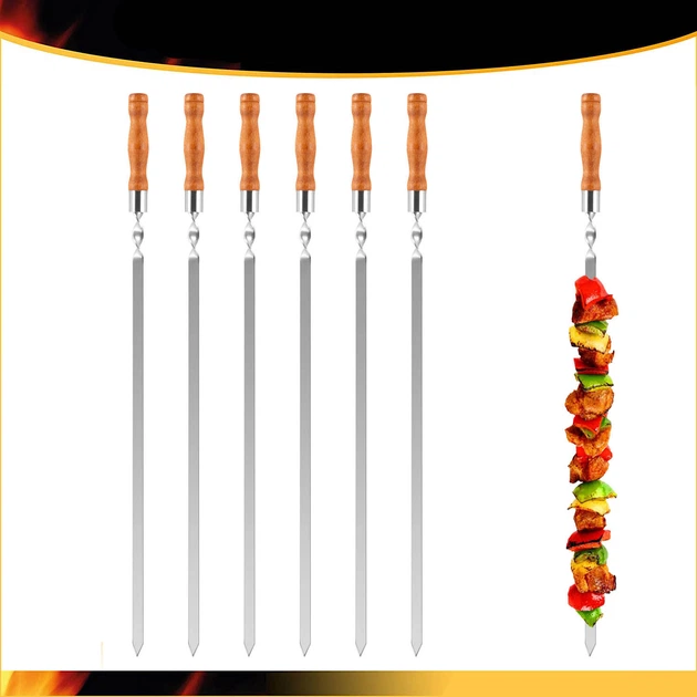 Комплект шампурів ручної роботи 6 шт нержавіюча сталь 630х12х3 мм дерев'яні ручки з бука