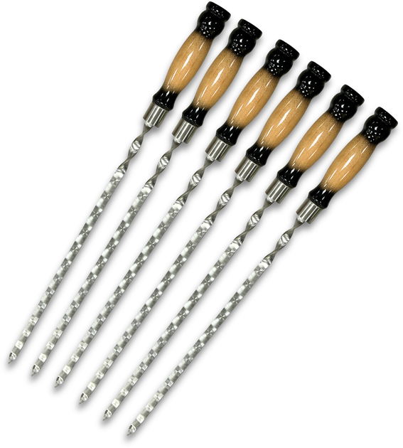 Набір із 6 шампурів Metalzavod з дерев'яною ручкою 630х12х3 мм Двокольоровий (N6-SHMP-DR-630x12x3-DUO)