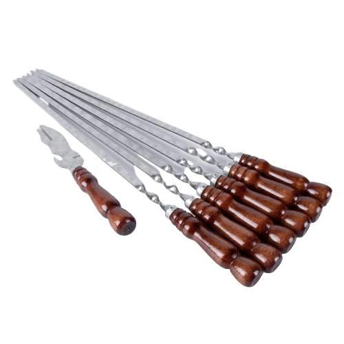 Набір шампурів Ексклюзив із нержавіючої сталі з плетеною ручкою 7 штук (21-10-SH-3122)