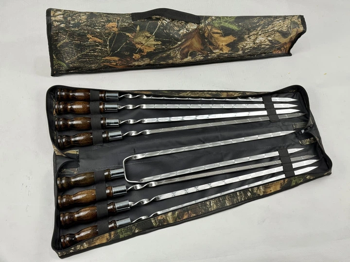 Набір шампурів в чохлі ПРЕМІУМ, (7 штук, подвійний шампур + чохол)