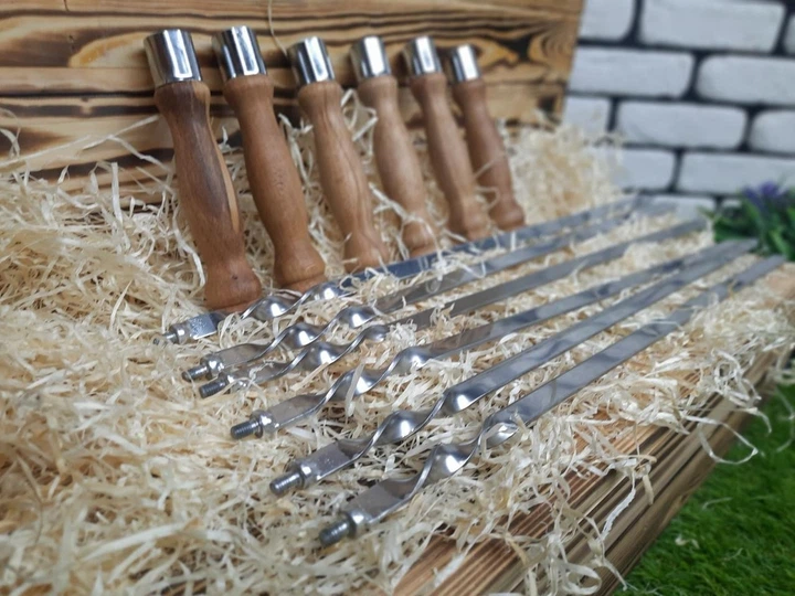 Набір шампурів для люля-кебаб Преміум з дерев'яною ручкою 6 шт із нержавіючої сталі (125-10-SH-3132)