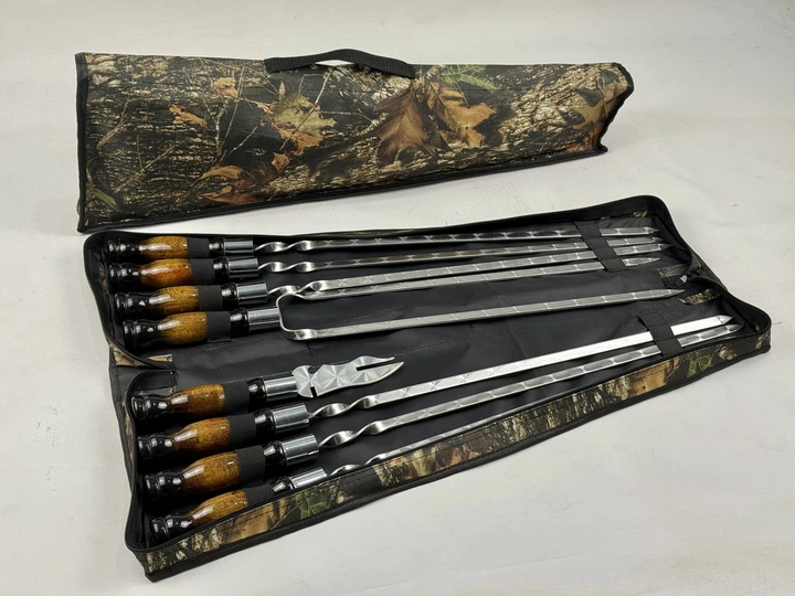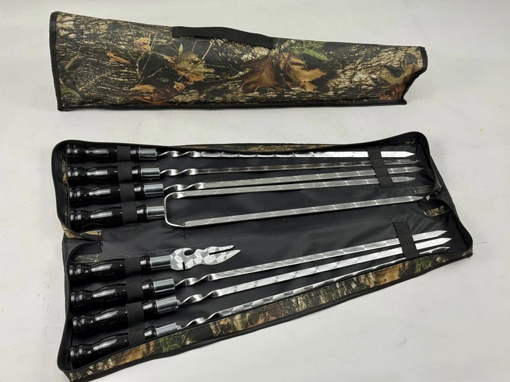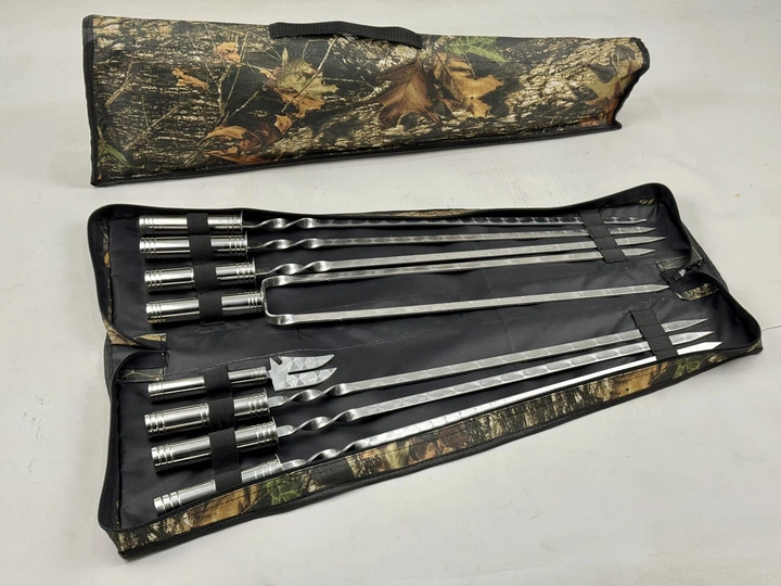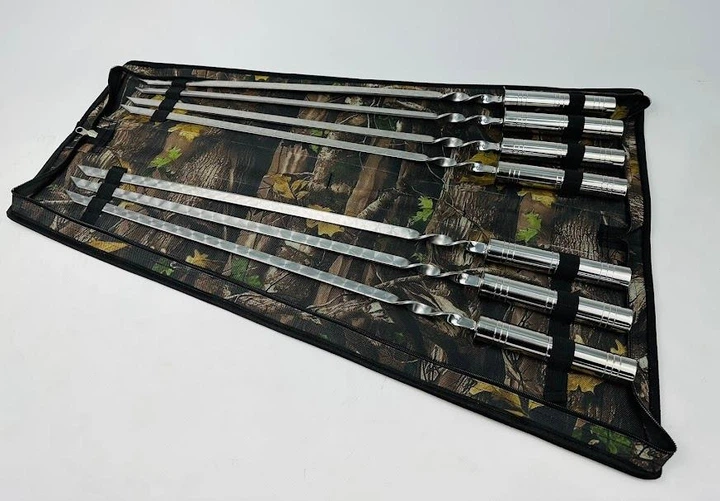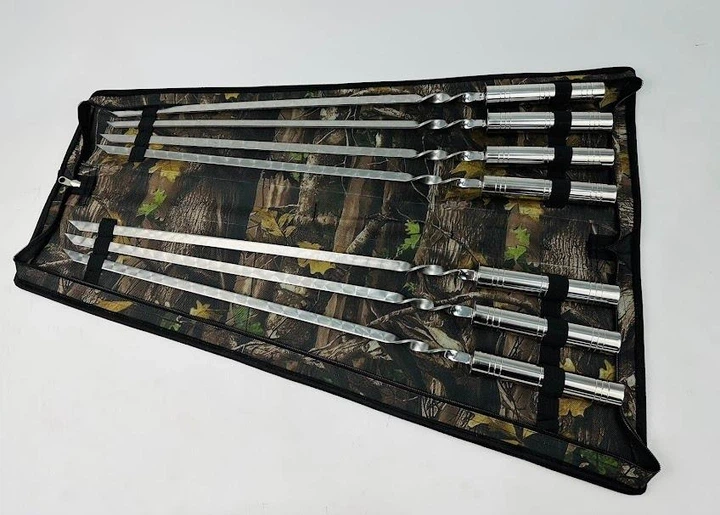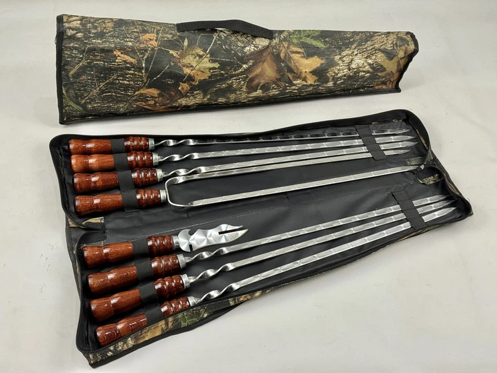 Набір шампурів Срібло з нержавіючої сталі на 7 предметів Камуфляж (135-10-NB-2278)