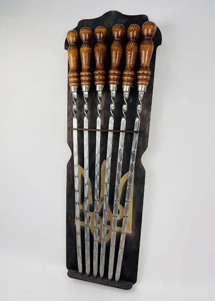 Набір шампурів настінний 6 предметів з дерев'яною ручкою з нержавіючої сталі (125-10-NB-4001)