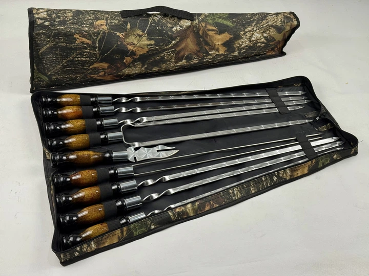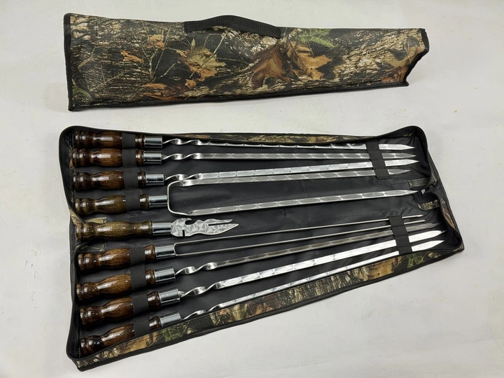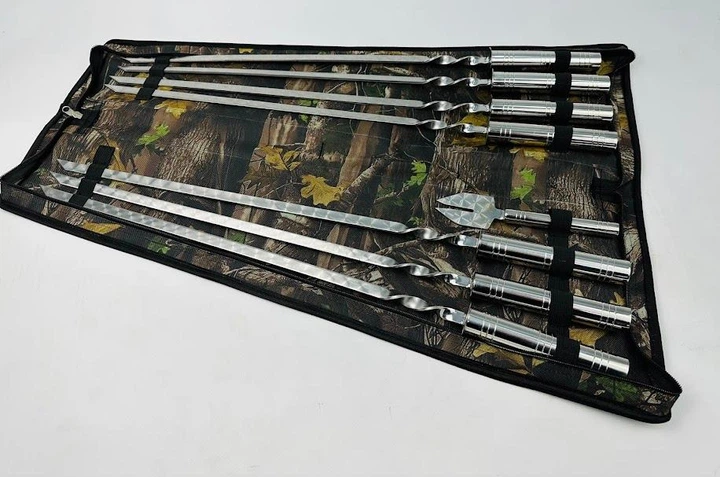 Набір шампурів Срібло з нержавіючої сталі та вилкою-ніж на 8 предметів Камуфляж (135-10-NB-2280)