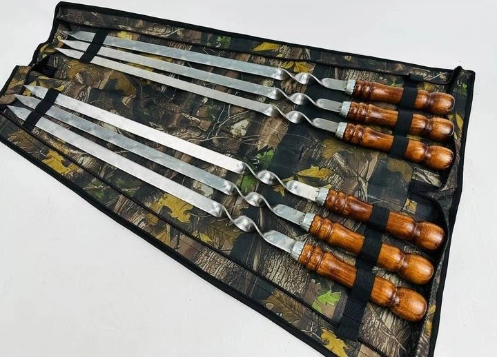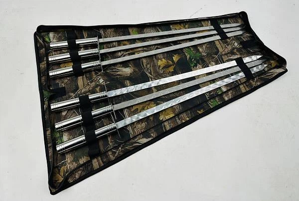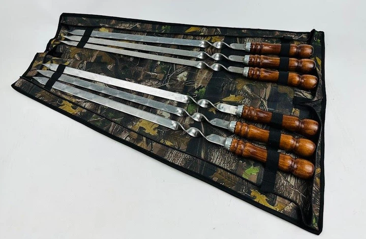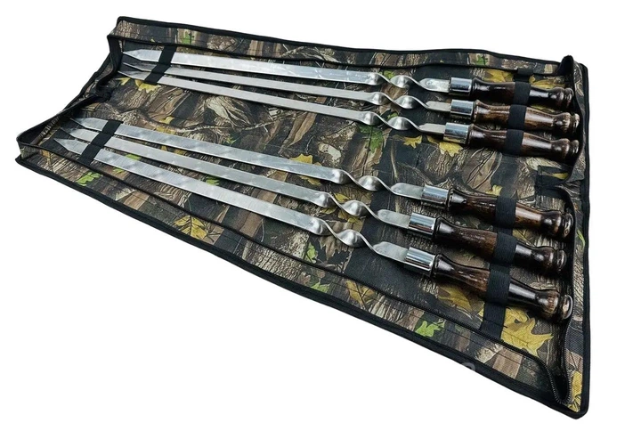 Набір шампурів для люля-кебаб з нержавіючої сталі та деревяними ручками на 6 предметів Камуфляж (135-10-NB-2287)