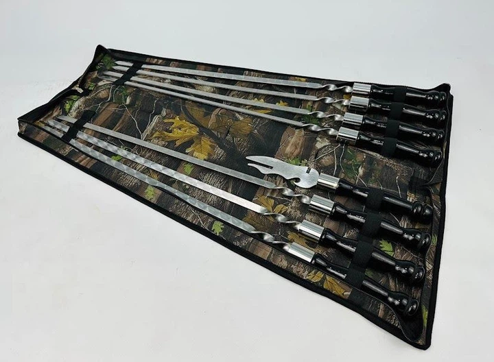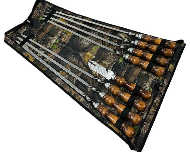 Набір шампурів Блек з нержавіючої сталі та деревяними ручками на 8 предметів Камуфляж (135-10-NB-2276)