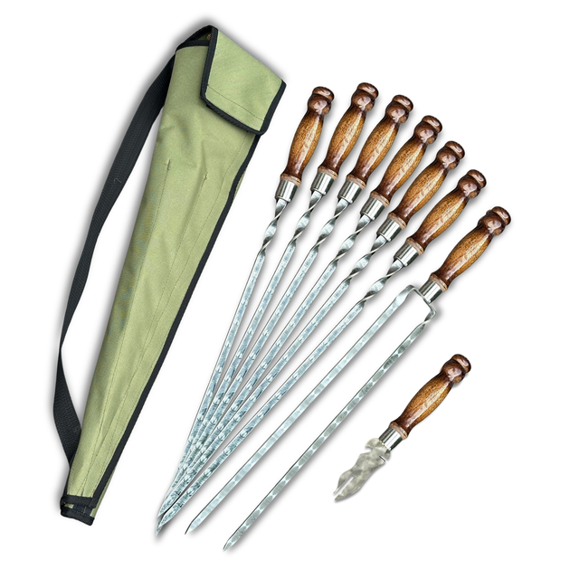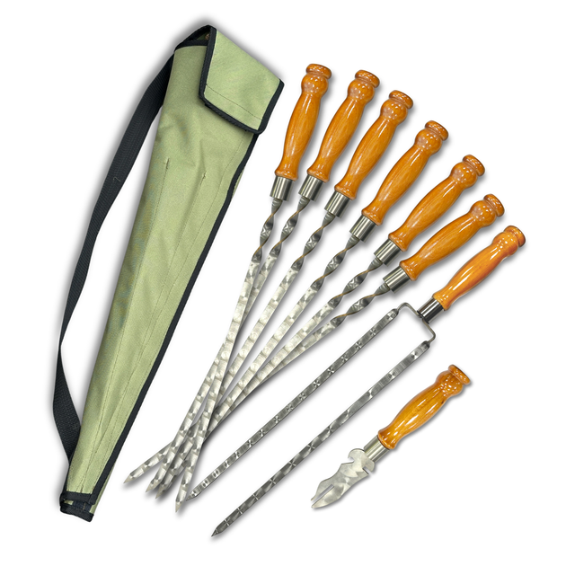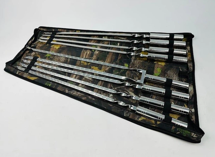 Набір шампурів Срібло з нержавіючої сталі та подвійним шампуром на 8 предметів Камуфляж (135-10-NB-2279)