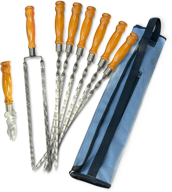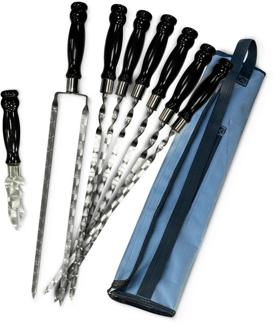 Набір шампурів Срібло із нержавіючої сталі з подвійним шампуром у чохлі 8 штук Сталевий (21-10-NB-2279)