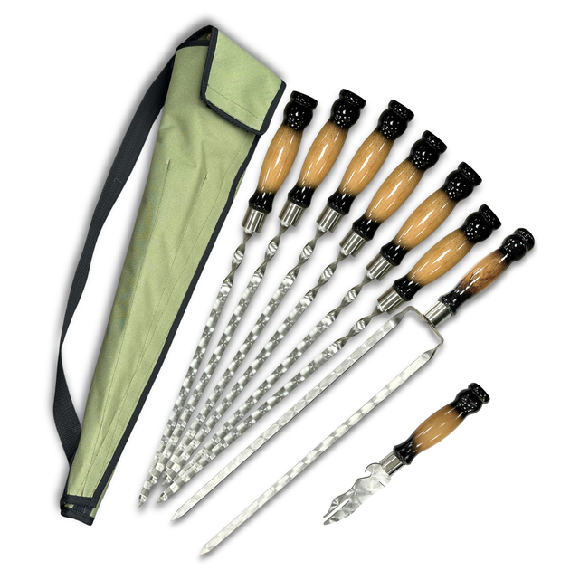 Набір шампурів Mzavod Ліра 6/1/1 двокольорова ручка в зеленому чохлі (N6-1-1-SHMP-LIRA-12-DUO)