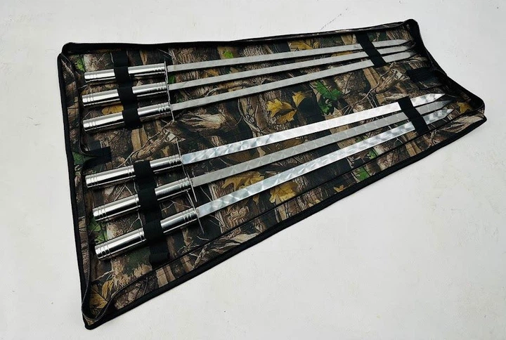 Набір шампурів Срібло для люля-кебаб з нержавіючої сталі на 6 предметів Камуфляж (135-10-NB-2288)