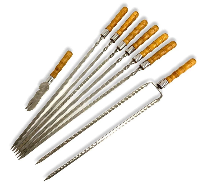Набір шампурів Срібло з подвійним шампуром 8 в 1 із нержавіючої сталі (21-10-NB-2279)
