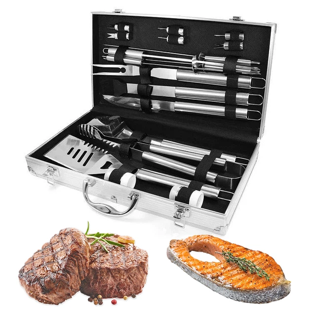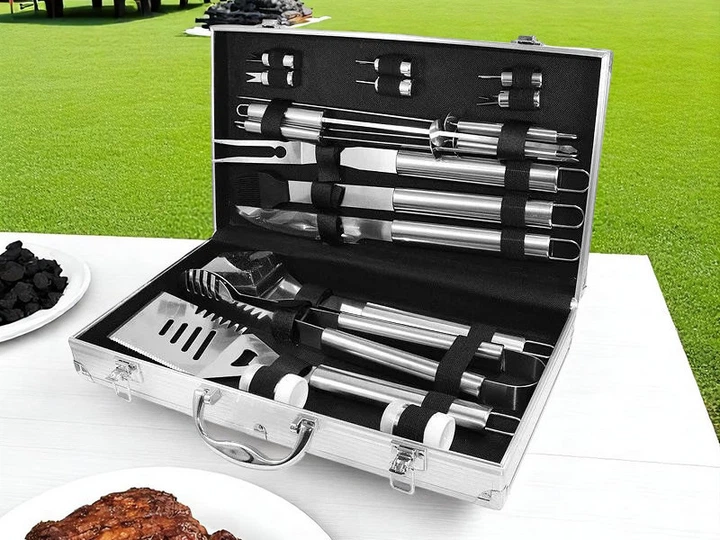 Подарунковий набір для гриля та шашлику BBQ з 18-ти предметів у металевому кейсі для мангалу 8994