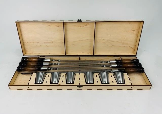 Набір шампурів Вуд з чарками в кейсі з фанери (21-10-NB-3003)