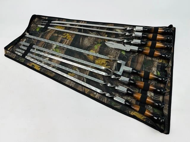 Набір шампуров Преміум з подвійним шампуром та вилкою-ножем для м'яса із нержавіючої сталі 8 в 1 в чохлі (21-10-NB-2285)