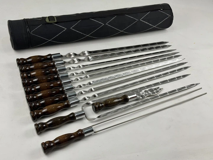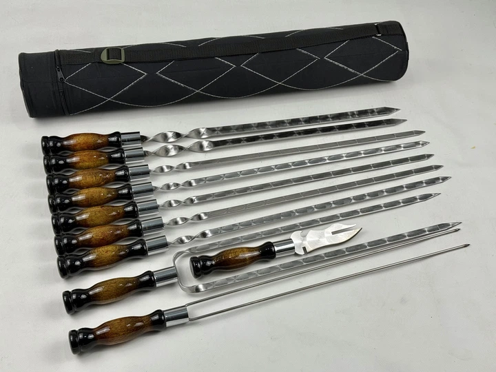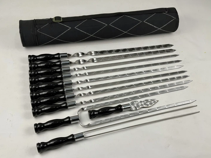 Набір 12 шампурів ручної роботи 690х20х3мм для люля-кебаба нержавіюча сталь з чохлом Україна