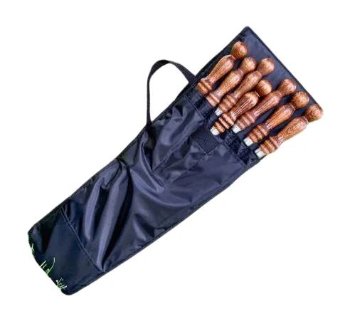 Набір шампурів ручної роботи Люкс 8 предметів з нержавіючої сталі з дерев'яними ручками в чохлі Коричневий (120-89-НШЛ-8)