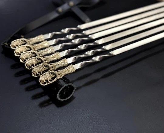 Набір шампурів з бронзовою ручкою "Сікачі" (6 шт) у шкіряному сагайдаку sk09