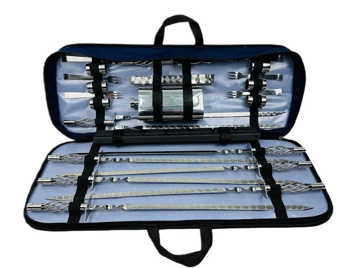 Набір шампурів з фігурною ручкою Планшет Ексклюзив 70х28х5 см 23 предмета з нержавіючої сталі у чохлі (125-10-NB-2237)