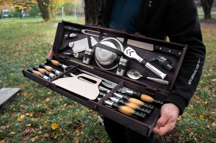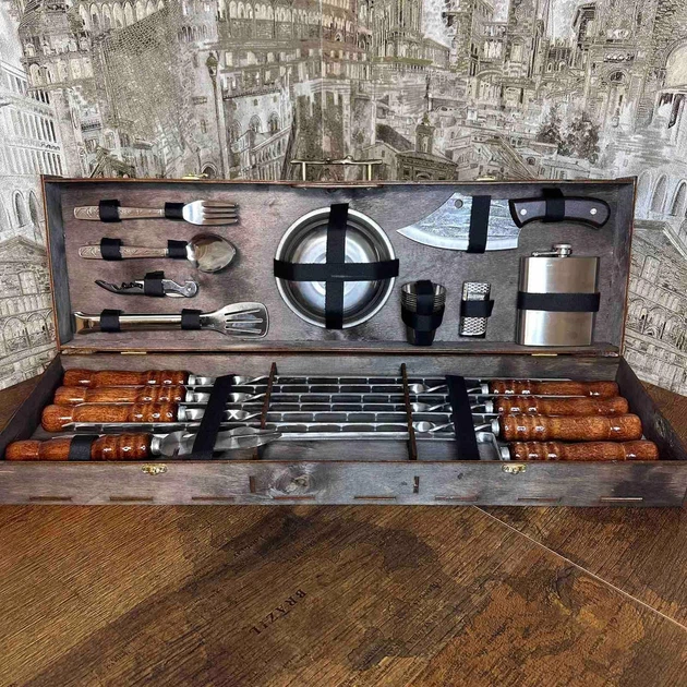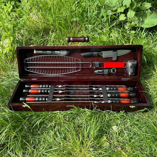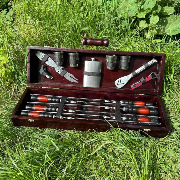 Подарунковий набір для пікніка в дерев'яному кейсі №6 Гриль 16 предметів