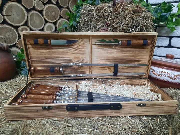 Набір із 6 шампурів + комплект аксесуарів у дерев'яному кейсі l-209