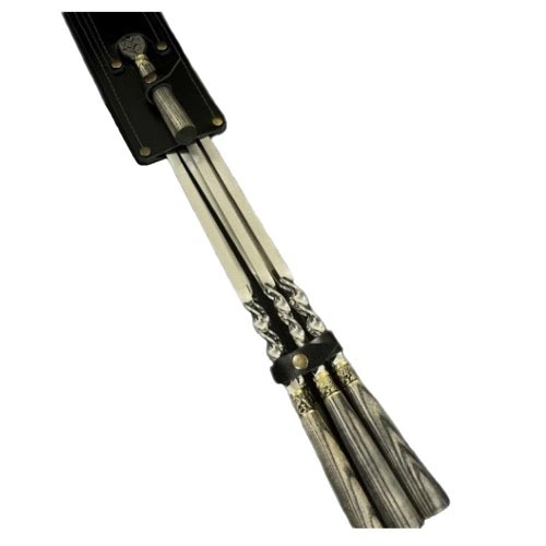 Набір шампурів ручної роботи ясен, руків'я дерева (6 шампурів, вилка), в шкіряному сагайдаку