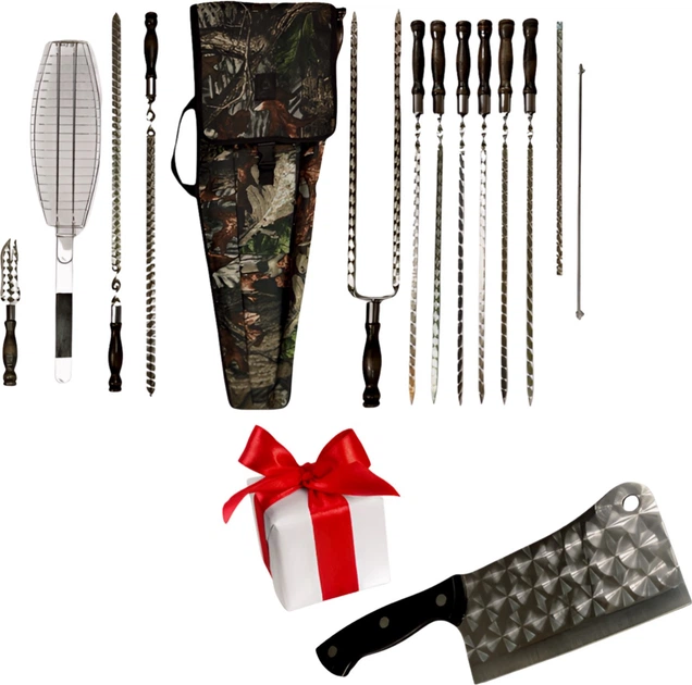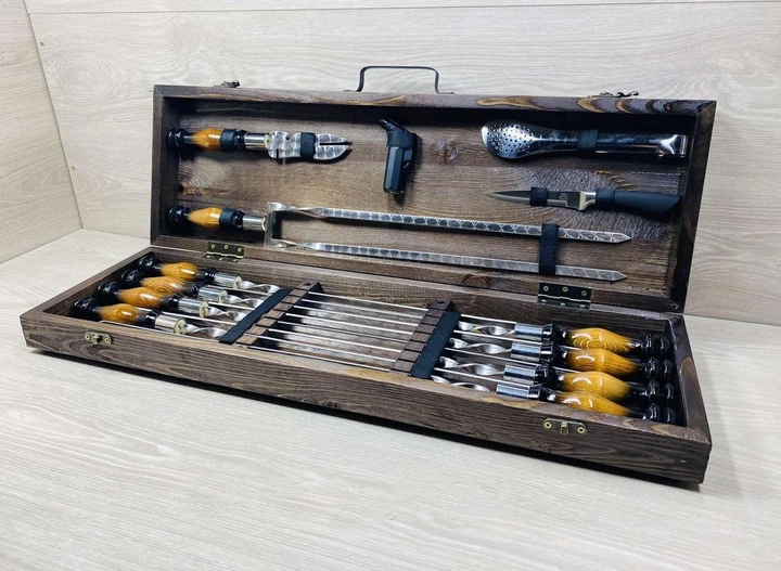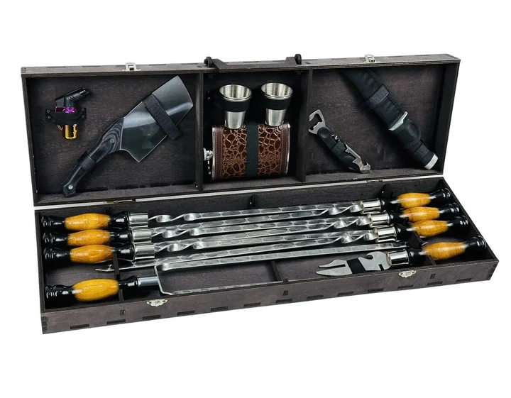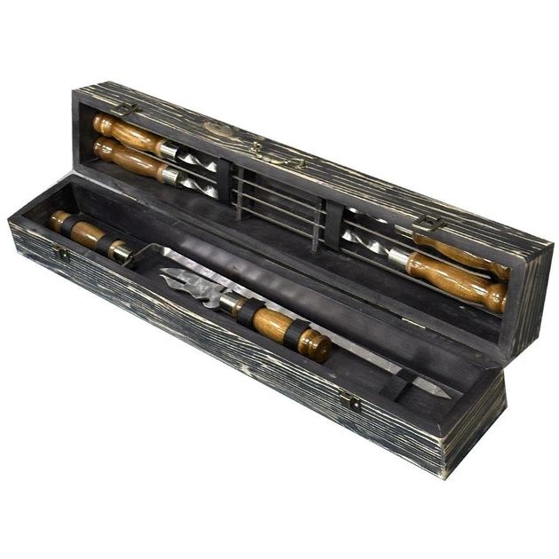 Подарунковий набір шампурів Mzavod ШашлиКейс ручної роботи Темна текстура