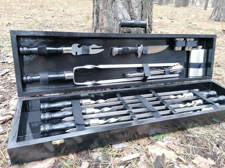 Набір подарункових шампурів для пікніка і барбекю Форест-2 ручної роботи. Подарунок дядькові на свято