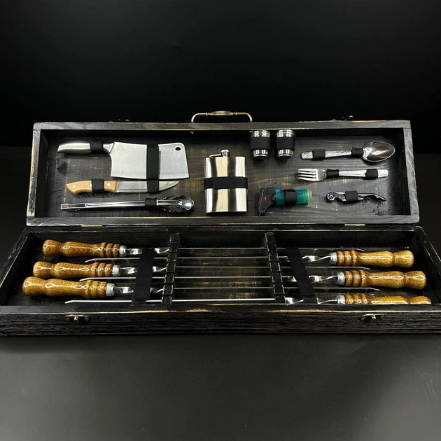 Набір шампурів у кейсі Shampur Box Bl-1 . Шашличний набір. Подарунок чоловікові