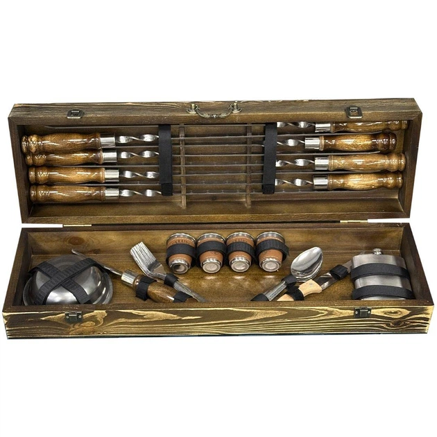 Набір шампурів у дерев'яному кейсі Скіф 20 предметів (21-10-KS-7608)