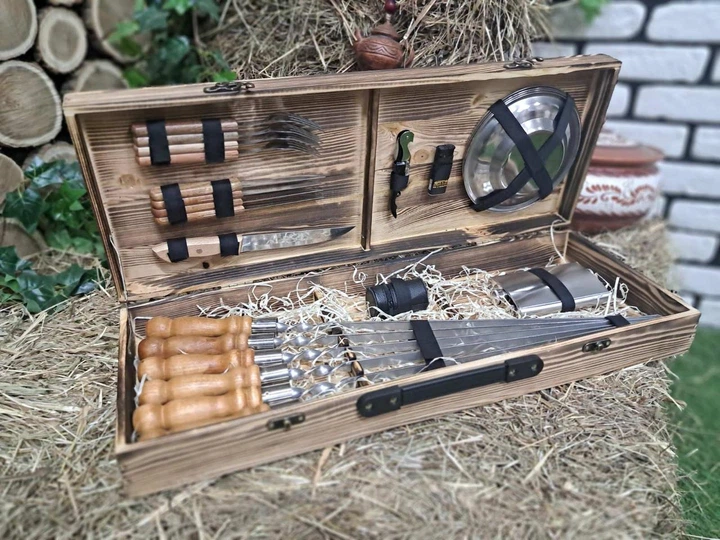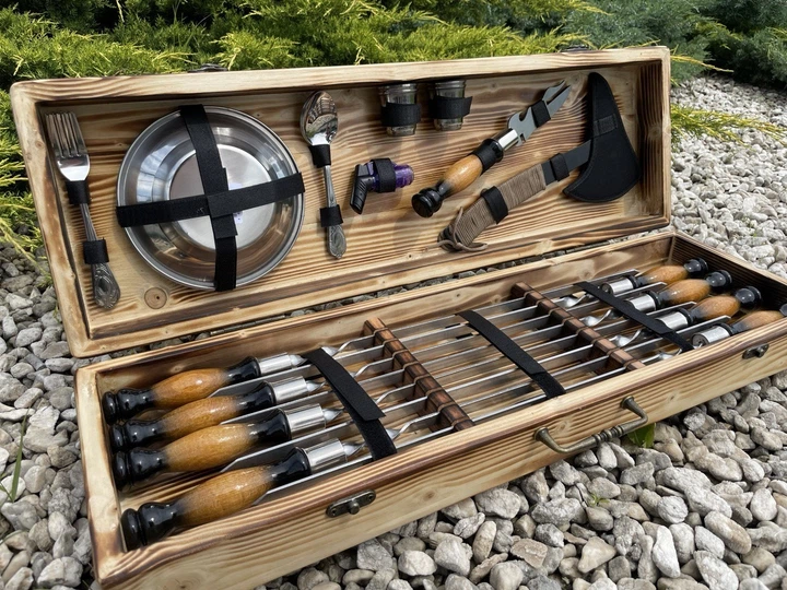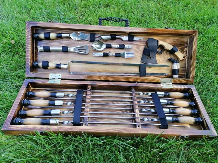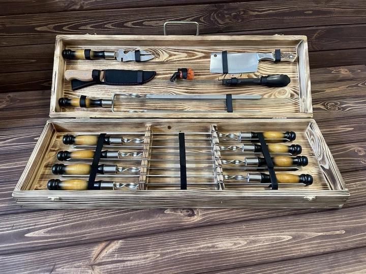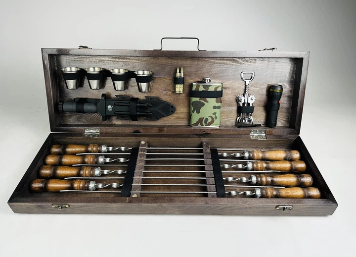 Набір із 6 шампурів + комплект аксесуарів у дерев'яному кейсі l-207