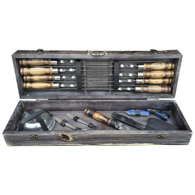 Набір шампурів Диверсант Гриля в дерев'яному кейсі Подарунковий набір для пікніка (KS-7613)