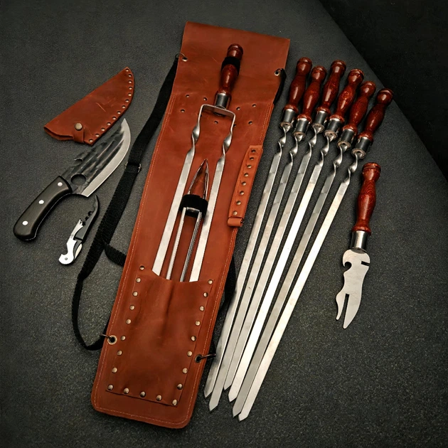 Подарунковий набір шампурів ECLIPSE ручної роботи в шкіряному чохлі