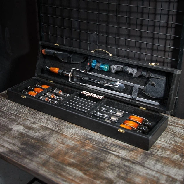 Набір шампурів в кейсі Black Барбекю. Шашличний набір. Подарунок хлопцю.