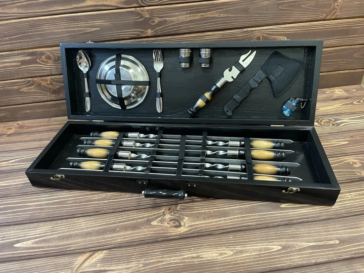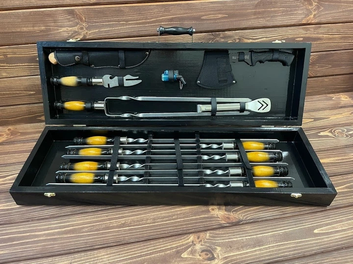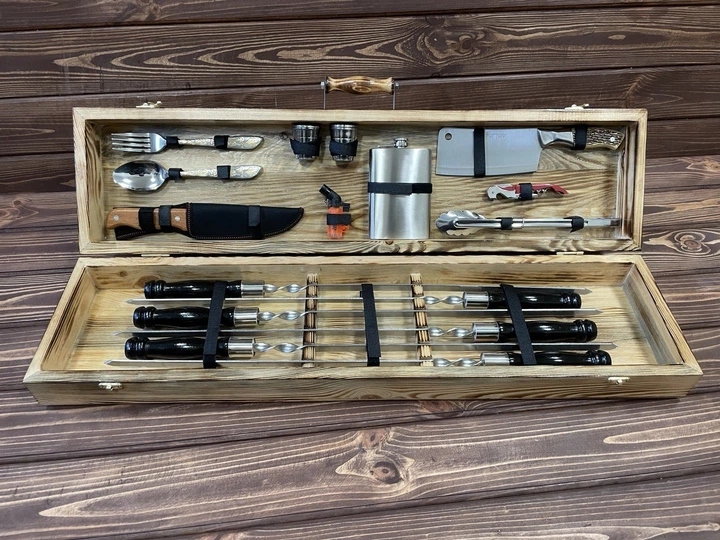 Набір шампурів Хижий вогонь в дерев'яному кейсі Подарунковий набір для пікніка (KS-7701)