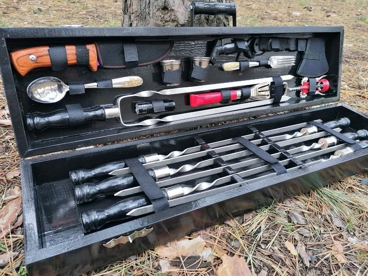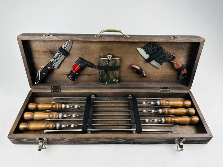 Набір шампурів у кейсі Шампура для шашлику та барбекю Ідеальний подарунок чоловікові ПРЕМІУМ, ручної роботи