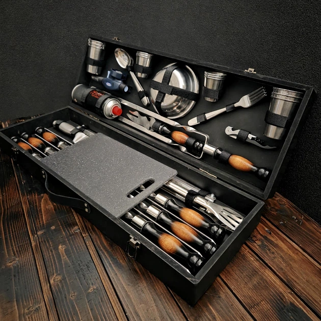 Подарунковий набір для пікніка в дерев'яному кейсі-трансформері №24 36 предметів