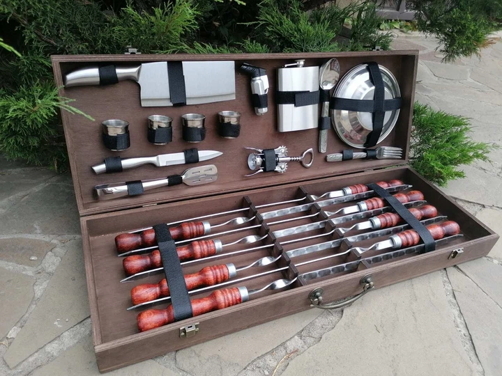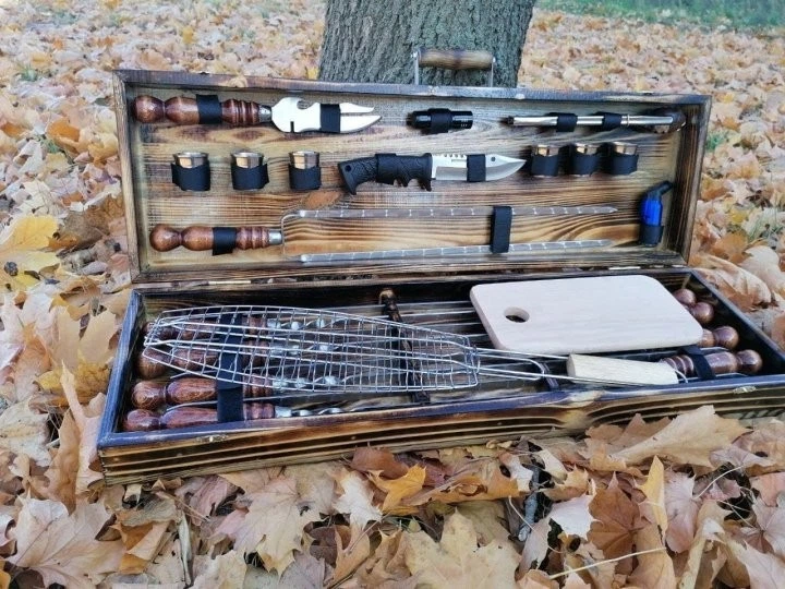 Подарунковий набір для пікніка в дерев'яному кейсі №87 Мандрівник 37 предметів