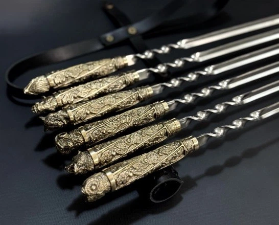 Шампури з бронзовою ручкою 6 штук у чохлі (sk16)