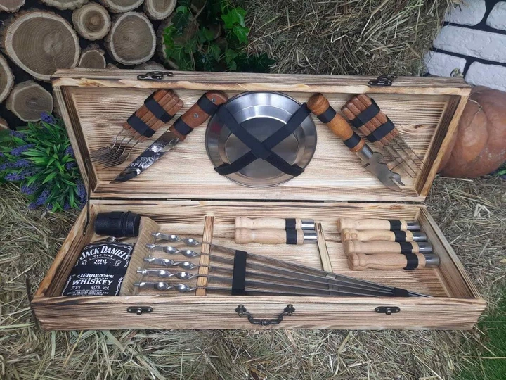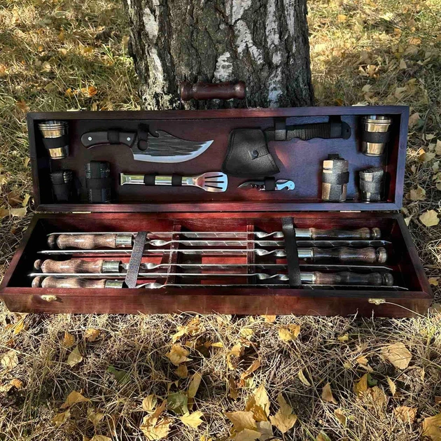 Подарунковий набір для пікніка в дерев'яному кейсі №94 Айдар 24 предмети
