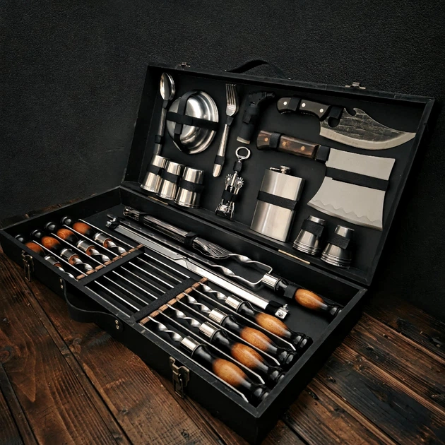 Подарунковий набір Каспій Кейс Стіл Трансформер Для Гриля Пікніка Мангала N196 23 предметів