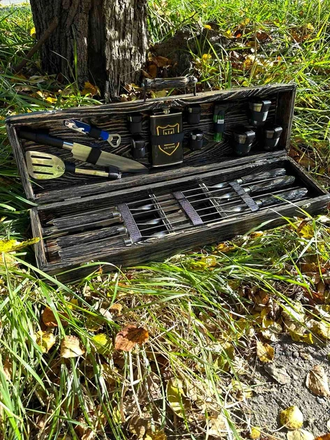 Подарунковий набір Каспій Кейс Стіл Трансформер Для Гриля Пікніка Мангала N196 23 предметів