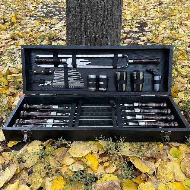Набір шампурів у дерев'яному кейсі на подарунок чоловікові, брату