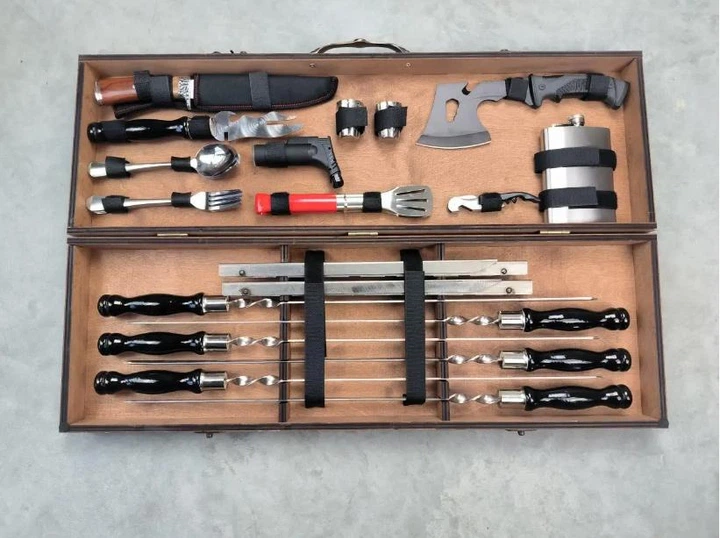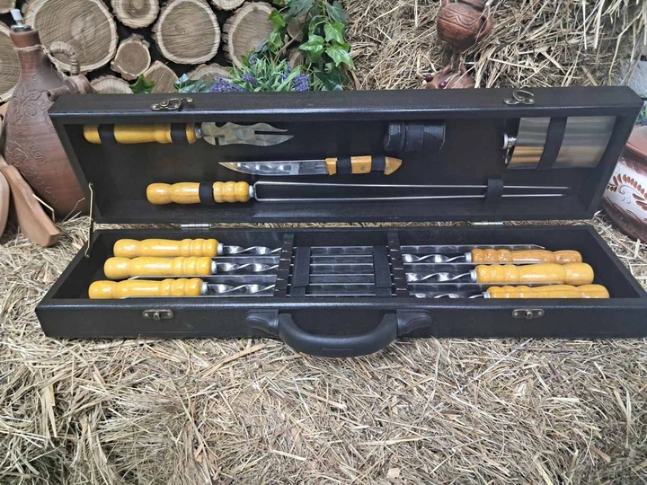 Подарунковий набір шампурів та аксесуарів ручної роботи у дерев'яному кейсі преміальної якості "Турист з шампурами Венге" 28