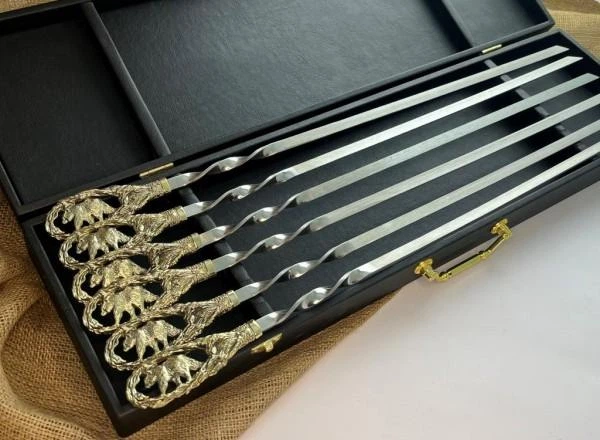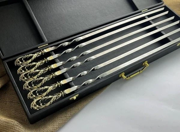 Шампури ручної роботи "Морський бриз" в кейсі, 6шт.зі шкірозамінника. (470005)