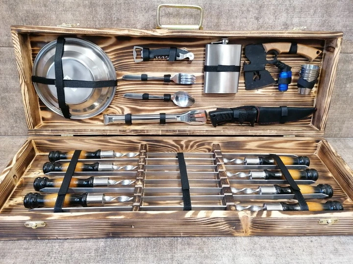 Подарунковий набір шампурів та аксесуарів Осавул для пікніка із нержавіючої сталі та натурального дерева (21-17-119051000080