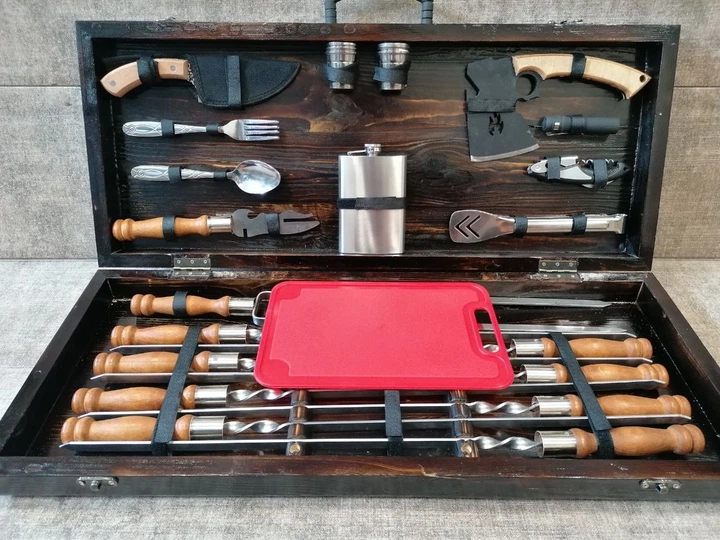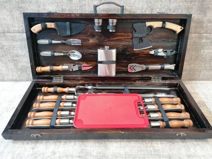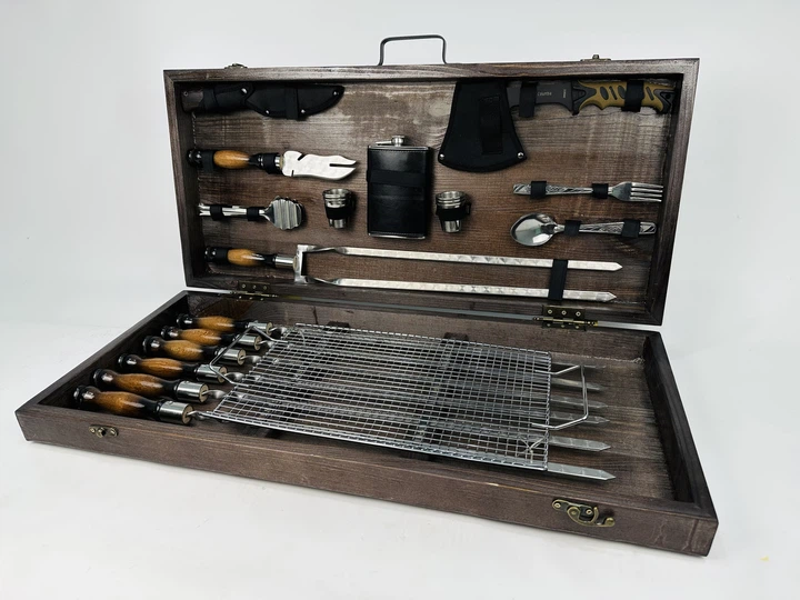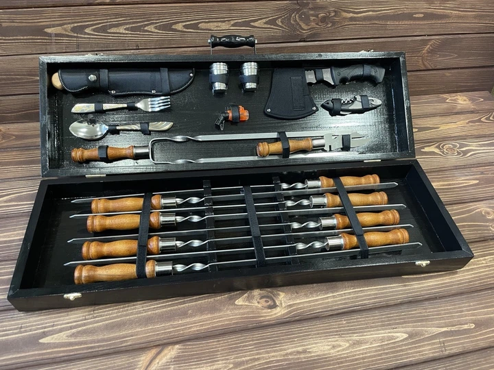 Подарунковий набір для пікніка ПРЕМІУМ, ручної роботи (шампура і аксесуари)